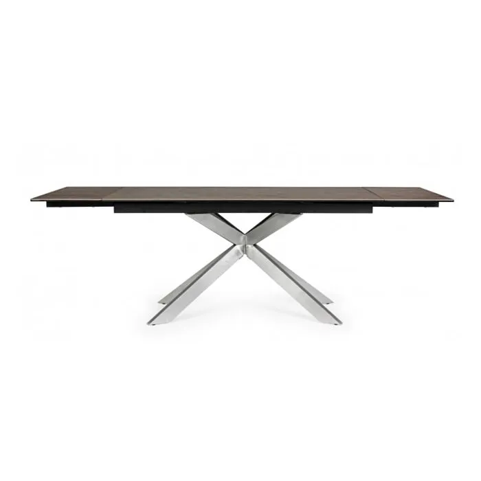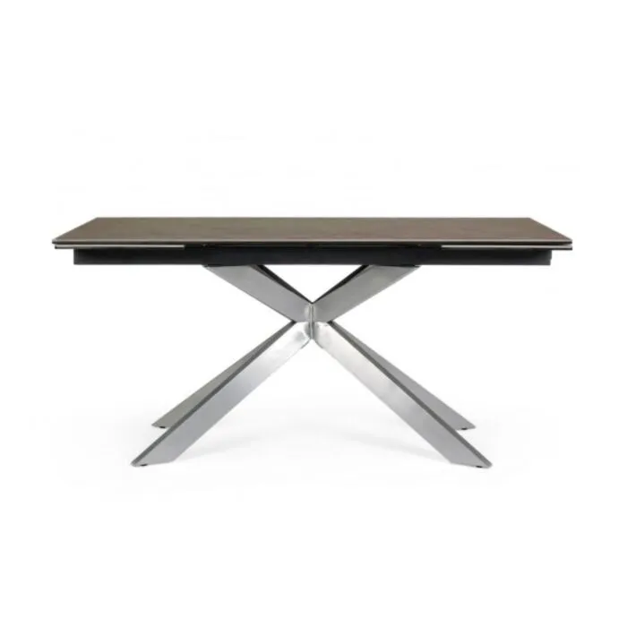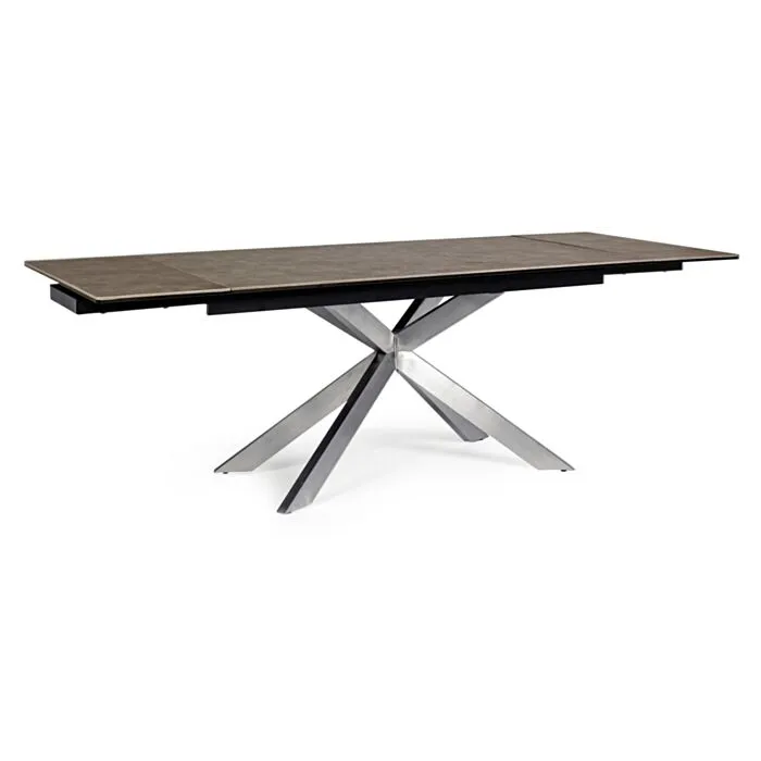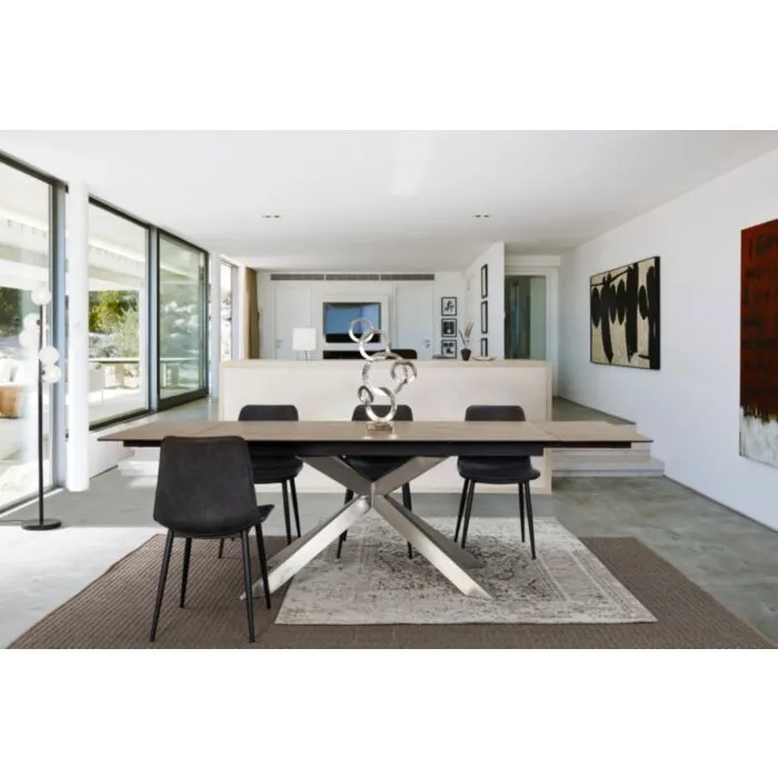 Raztegljiva jedilna miza ARZACHEL je sestavljena iz nerjaveče jeklene konstrukcije. Mizna plošča je iz keramike 5mm ter iz kaljenega stekla 8mm. Miza je modernega dizajna ter kvalitetna in stabilna.