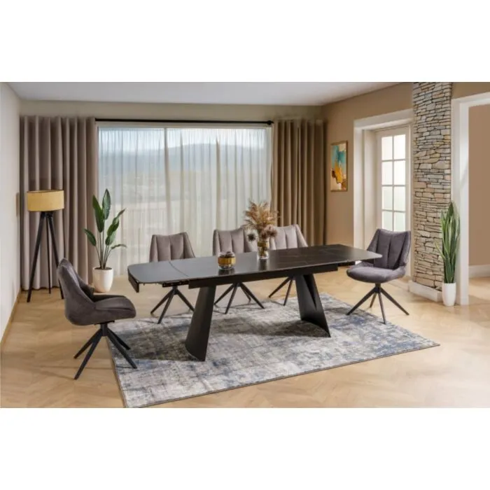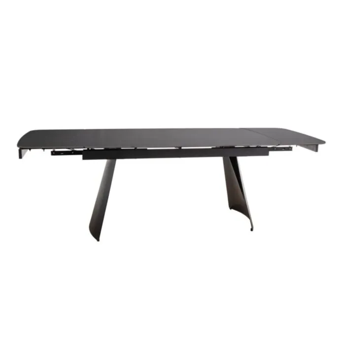 Raztegljiva jedilna miza BALINI je narejena do podrobnosti natančno. Očarali vas bodo njeni prefinjeno narejeni vzorci ter stabilnost. Narejena je iz kakovostne keramike v črni mat barvi, v videzu marmorja. Okvir je narejen iz kovine v črni mat barvi. Miza je raztegljiva.