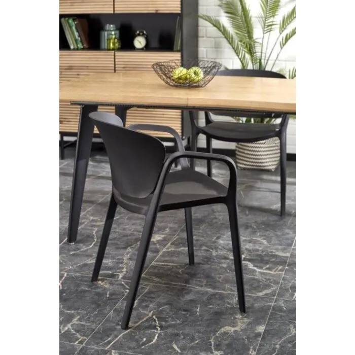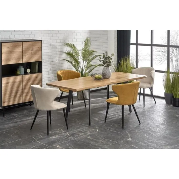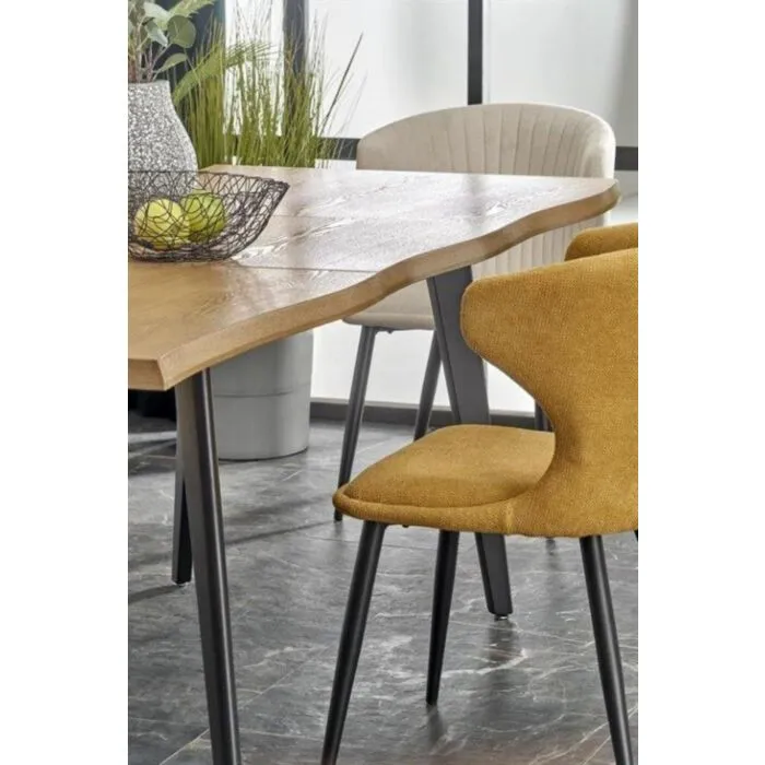 Raztegljiva jedilna miza BRIN, bo prinesla svežino in eleganco v vaš prostor. Narejena je iz kakovostnega MDF- ja in naravnega furnirja. Nogice so narejene iz kovine. Miza je v barvi hrasta s kombinacijo črne. S svojo obliko in barvo popestri vsak prostor.