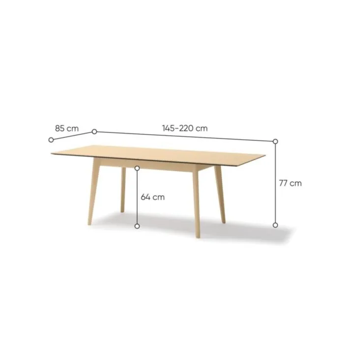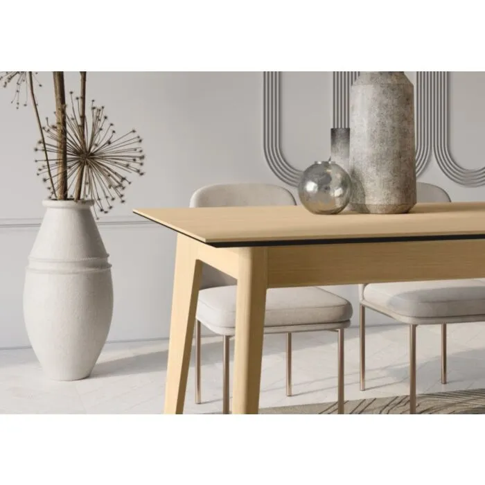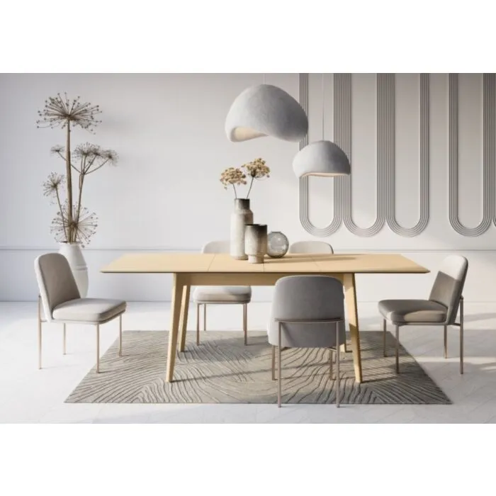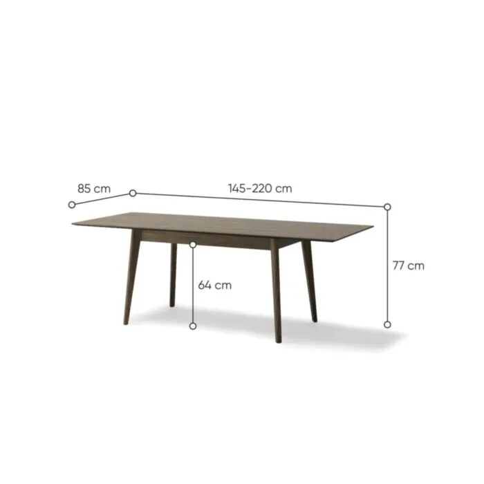 Raztegljiva jedilna miza DOBY 3 je idealen kos pohištva za vašo jedilnico. Zahvaljujoč raztegljivi funkciji lahko velikost mize preprosto prilagajate svojim potrebam. Tako boste lahko vsak dan uživali v kompaktni, udobni mizi ali pa pridobili dodaten prostor za večja druženja. Raztegljiva miza DOBY 3 je odlična rešitev, ki vam omogoča prihranek prostora, hkrati pa ste vedno pripravljeni na nepričakovane goste. Dobavljiva je v dveh barvah: Temni hrast in svetli hrast.
