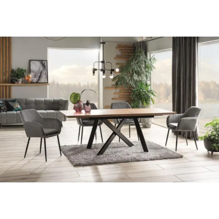 Raztegljiva jedilna miza KREATOR odlične kvalitete, ki po svoji obliki sledi najsodobnejšim trendom oblikovalcev pohištva. Združuje ljubezen do lesa in robustno moč kovine. V podaljšani obliki lahko za njo sedi kar 10 oseb.