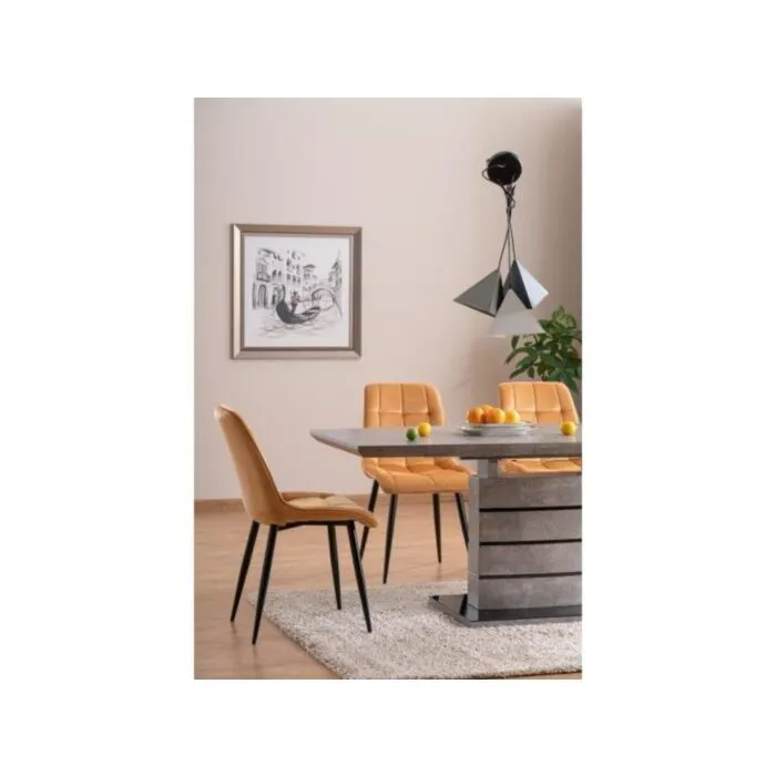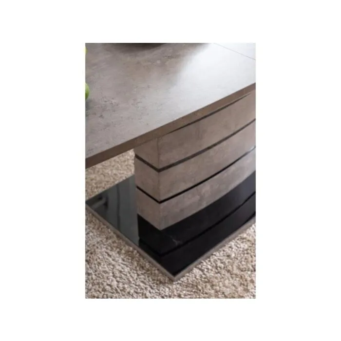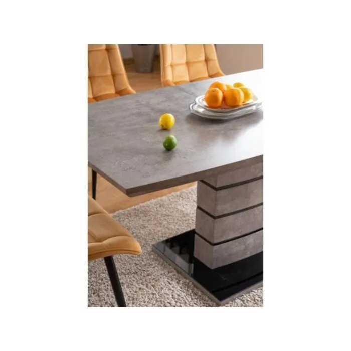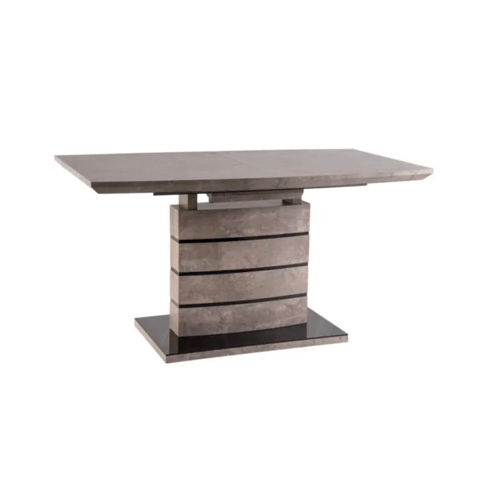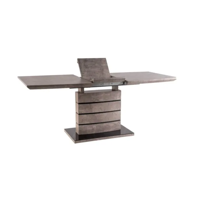 Raztegljiva jedilna miza LEON beton je modernega videza, v beton videzu. Obenem odraža izbran okus in se odlično ujema z nevtralnimi odtenki drugega pohištva v prostoru. Mizna plošča je izdelana iz MDF- ja in furnirja. Ogrodje pa je izdelano iz MDF- ja in jekla. Miza je raztegljiva.