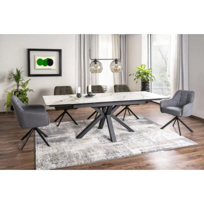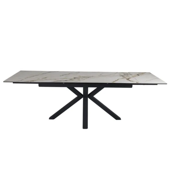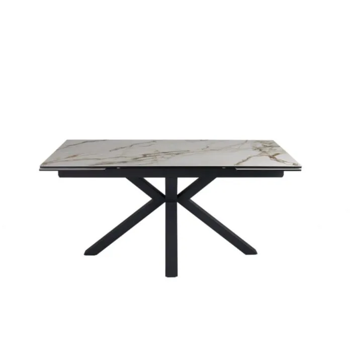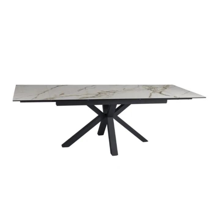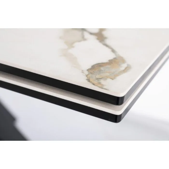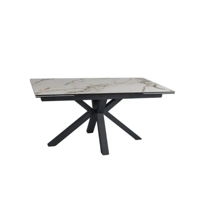 Raztegljiva jedilna miza LOKI 160 – bela mat, je narejena iz kvalitetnega kaljenega stekla in španske keramike z videzom marmorja, v beli mat barvi. Noge so iz kovine v črni mat barvi. S svojo barvo in obliko popestri vsak prostor.