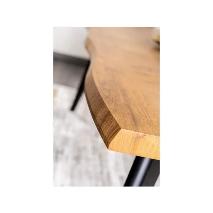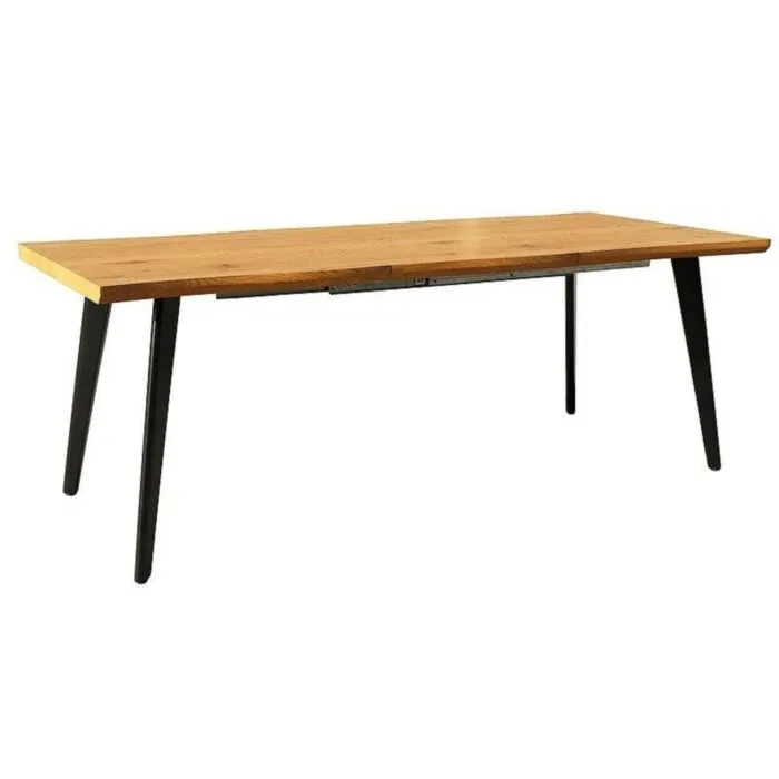 Raztegljiva jedilna miza RAS 150 ima moderno, rahlo valovito obliko robov mizne plošče. Barva hrasta bo vnesla svežino v prostor in črne noge naredijo celoten izgled eleganten ter prefinjen. Miza je praktična za vsakodnevno uporabo in se lahko raztegne na 210 cm. Njegova trdna izdelava vam bo omogočala dolgotrajno uporabo.