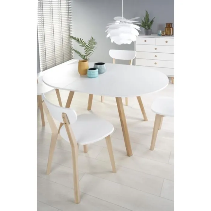 Raztegljiva miza RUBIN bela je kakovostna masivna jedilna miza, ki se lahko podaljša za 40 cm.