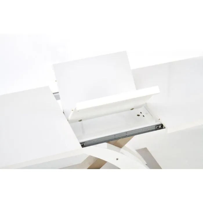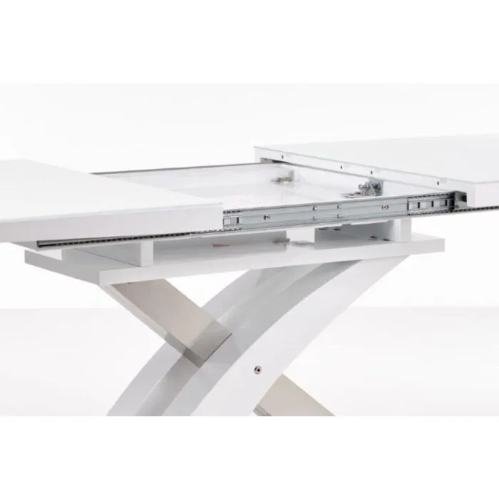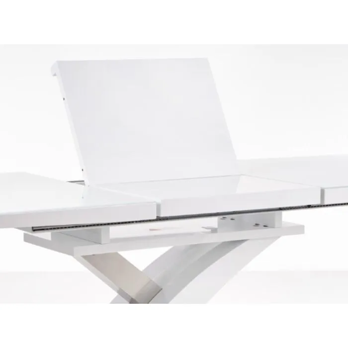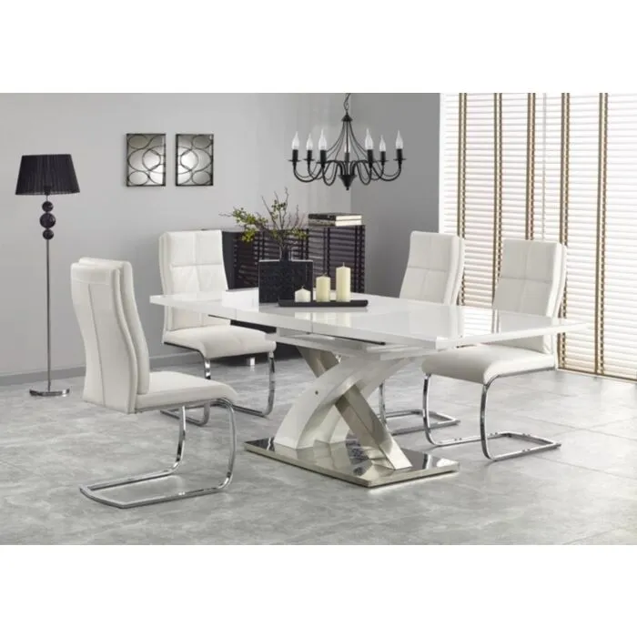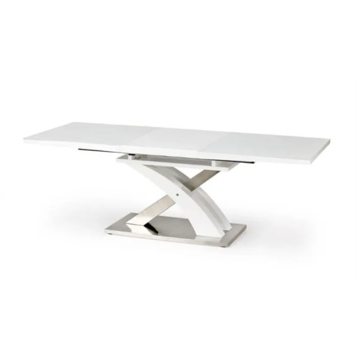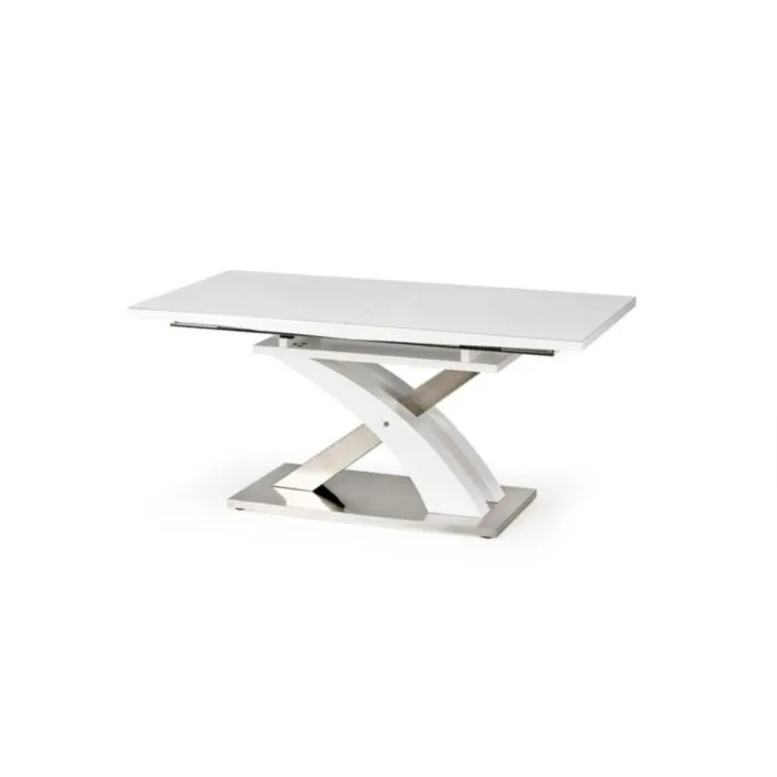 Raztegljiva jedilna miza SARDON1 je kakovostna, sodobna in hkrati prefinjena. Dizajn navdaja jedilni prostor z eleganco in praktičnostjo. Lahko jo podaljšate saj je raztegljiva in tako omogočite namestitev osem ali več oseb za njo. Mizna plošča je izdelana iz lakiranega MDF- ja v beli barvi in stekla. Ogrodje pa je izdelano iz lakiranega MDF – ja bele barve in kromiranega jekla.