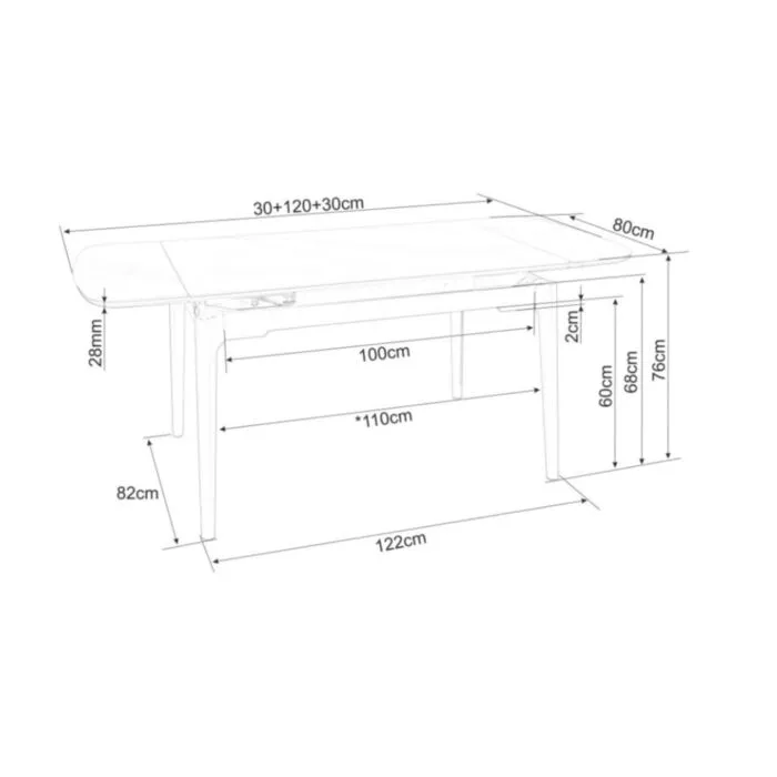 – D: 120 (180) cm x G: 80 cm x V: 76 cm