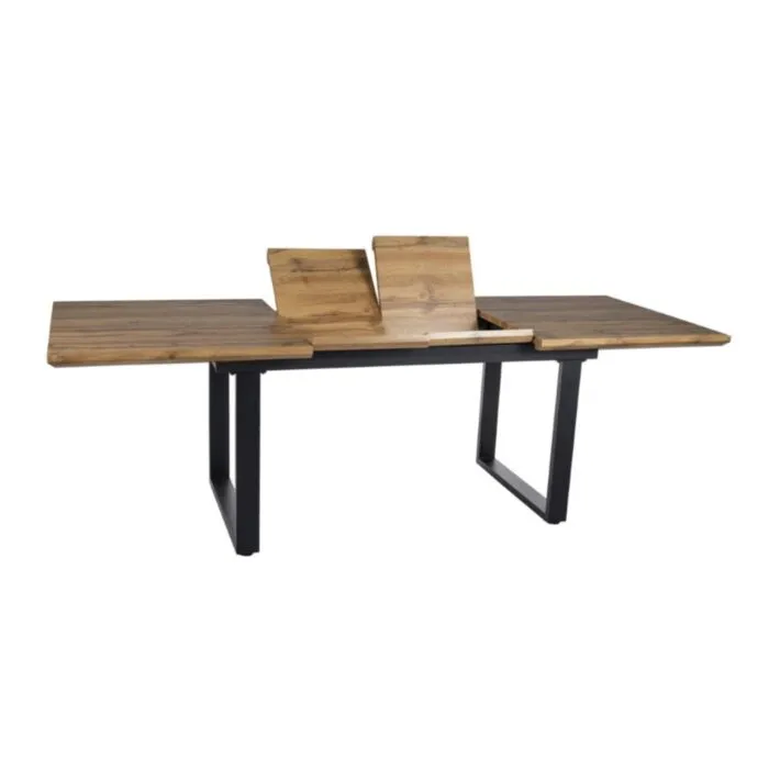 Raztegljiva kuhinjska miza BERTO, je popolen kos pohištva, ki popestri vašo jedilnico. Mizna plošča je narejena iz kakovostnega MDF-ja in furnirja. Ogrodje je narejeno iz kovine. Miza je v barvi artisan hrasta z kombinacijo črne mat. S svojo barvo in obliko prinese vašemu prostoru posebno eleganco. Miza je raztegljiva, kar za dve stopnji. Celotna širina raztegnjene mize je lahko 240cm.