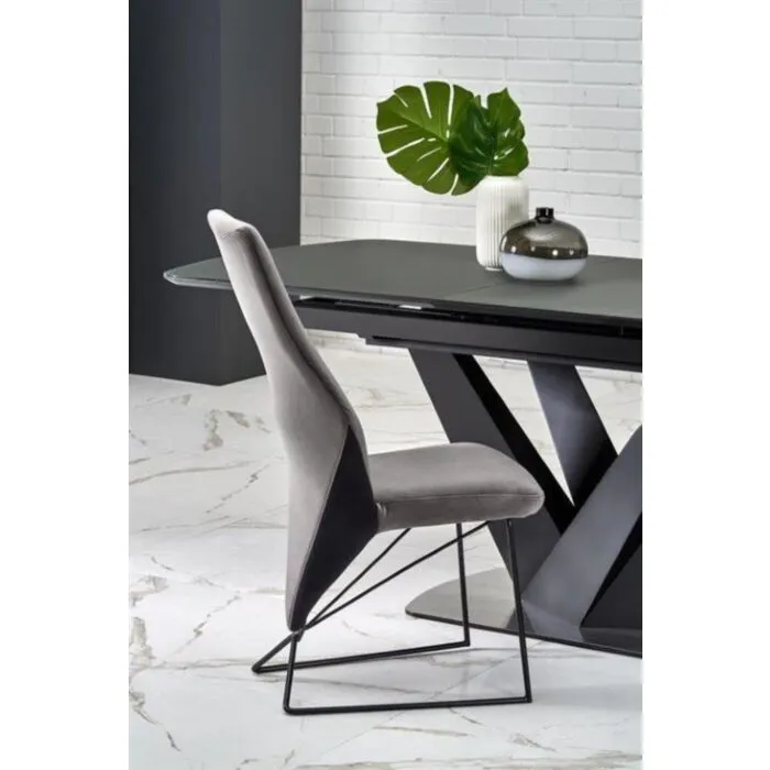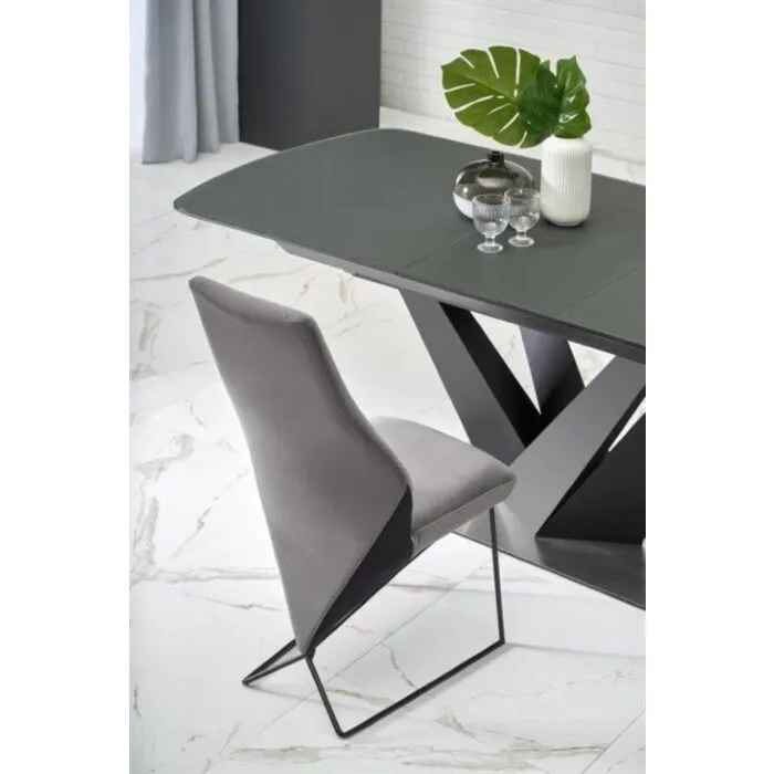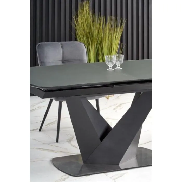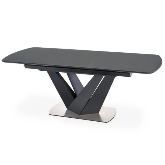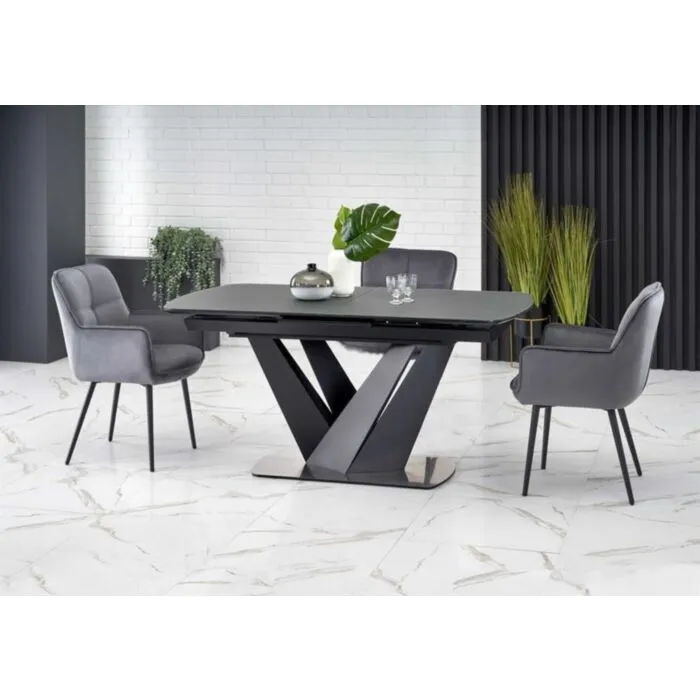 Raztegljiva kuhinjska miza SANDRA, bo prinesla svežino in eleganco v vaš prostor. Narejena je iz kakovostnega MDF-ja in stekla. Noge so narejene iz nerjaveče kovine. Mizna plošča je v temno sivi barvi. Noge pa so v črni barvi.