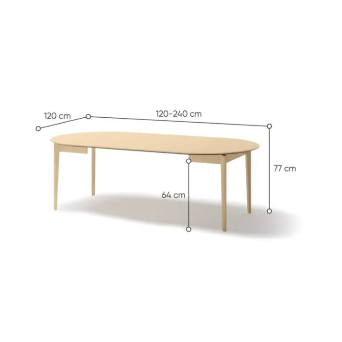 D: 120-240 cm x G: 120 cm x V: 77 cm