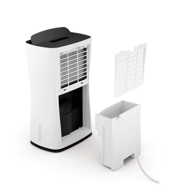 Priporočena velikost prostora do: 40 m2/100 m3. Nastavitev stopenj delovanja: 1. Avtomatski izklop, ko je posoda za vodo polna. Možnost nastavitve željene vlažnostina 40%, 50%, 60% ali neprekinjeno delovanje.
