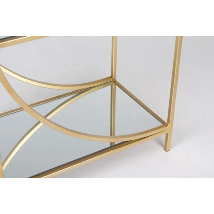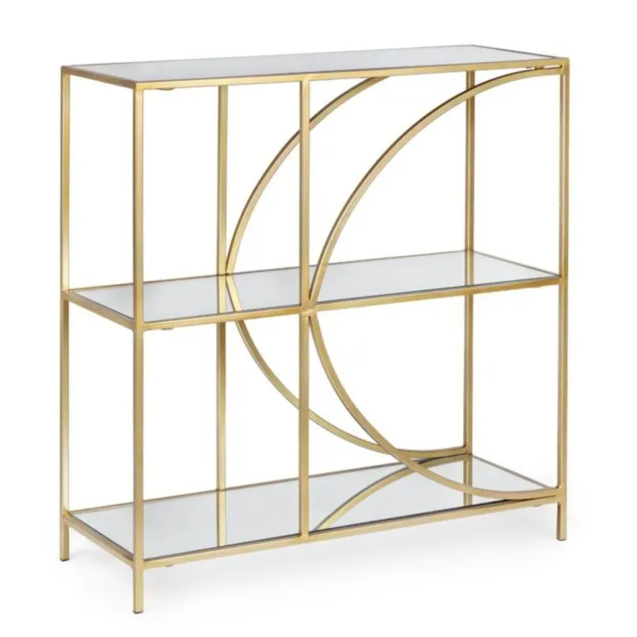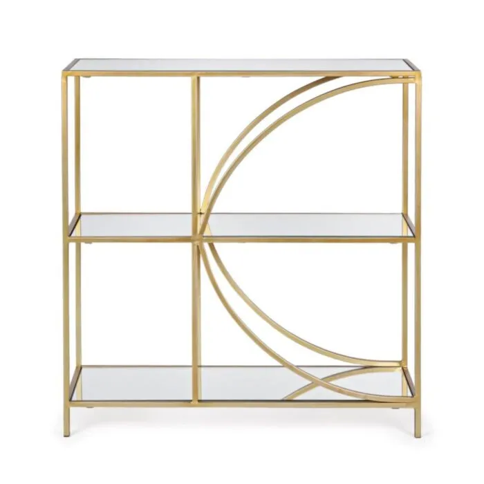 Regal 3P ELENOR, je eleganten kos pohištva, ki popestri vsak prostor. S svojo zlato kovinsko konstrukcijo in steklenimi policami, se prilega vsakemu kotičku vašega prostora.
