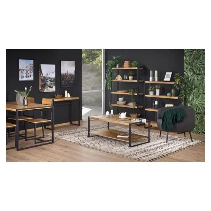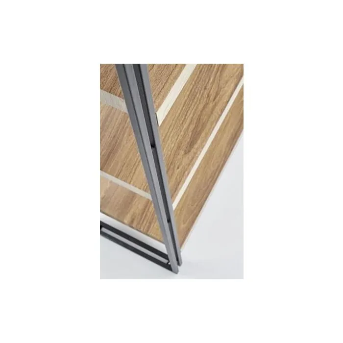 Regal MATEJ je eleganten in funkcionalen kos pohištva. Izdelan je iz MDF-ja in kovine, v sodobni kombinaciji zlate hrastove barve in črnih detajlov. Ta regal bo s svojo moderno obliko in praktično zasnovo odlično dopolnil vsak prostor, hkrati pa ponudil dovolj prostora za shranjevanje ali razstavljanje dekoracij.