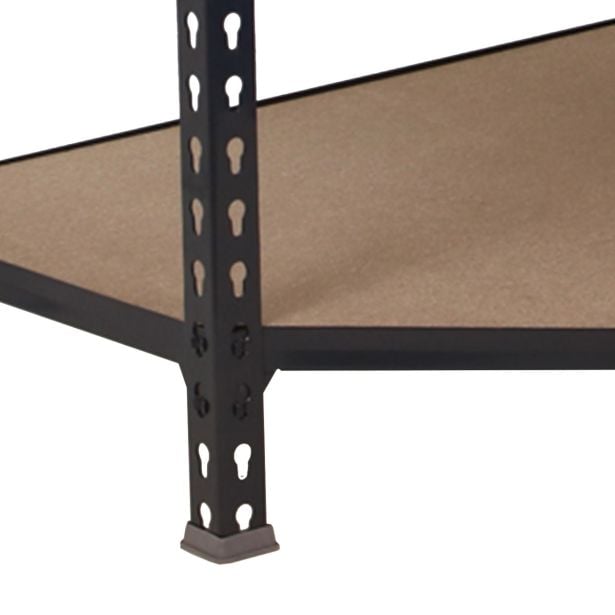Kotna kovinska polica brez vijakov z ivernimi koriti, barva ANTRACIT/LES. Ima 5 polic.