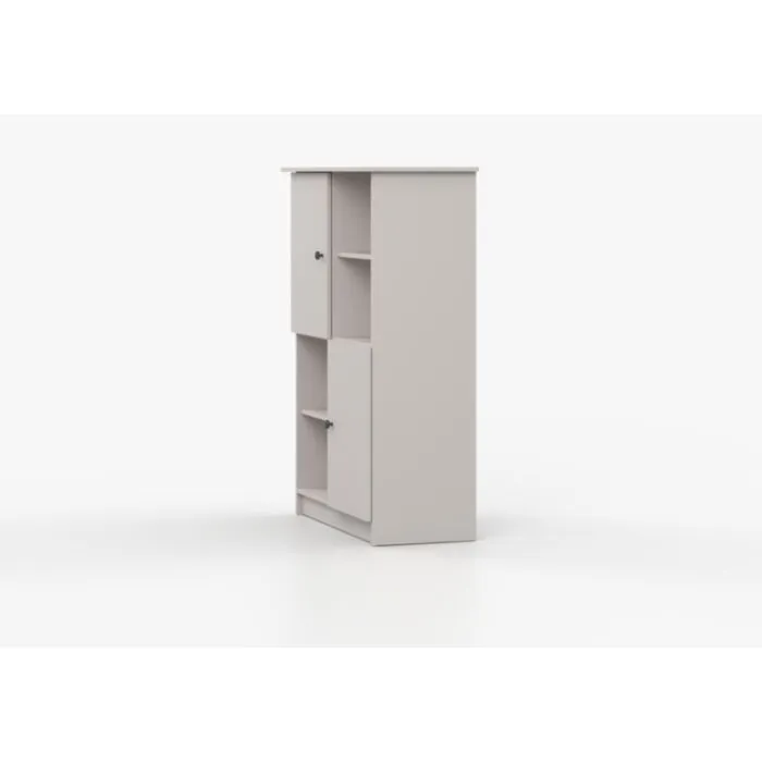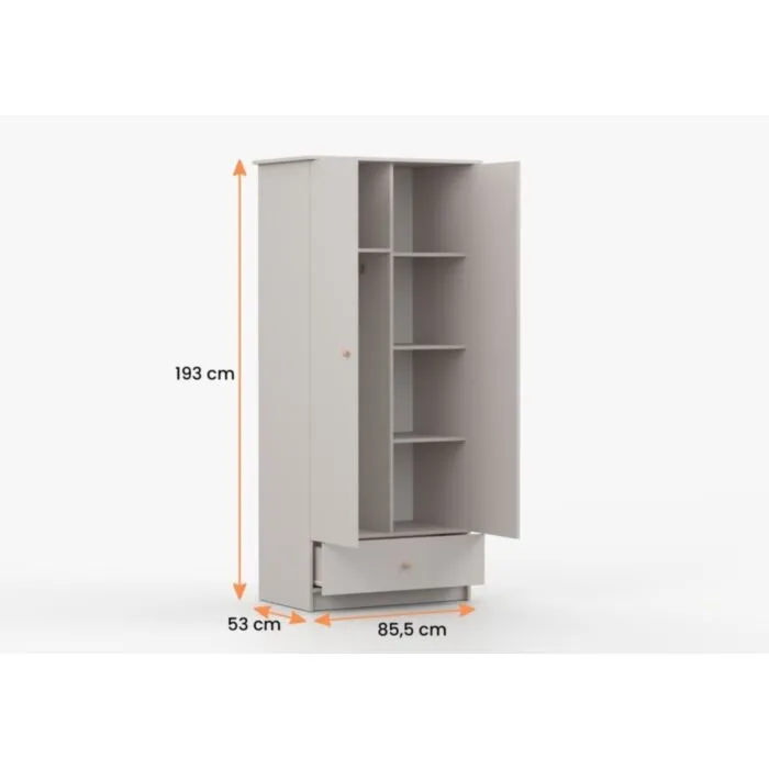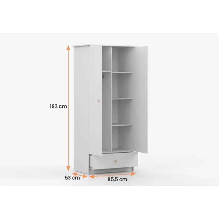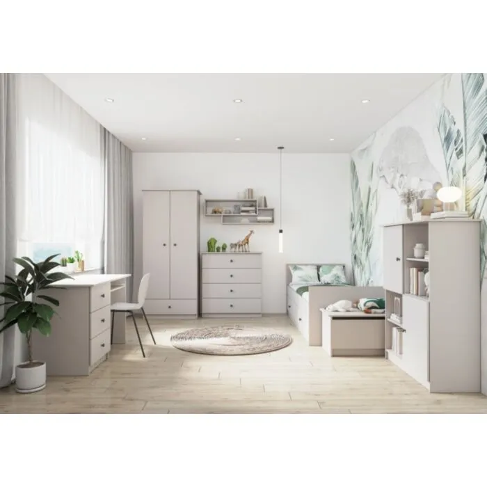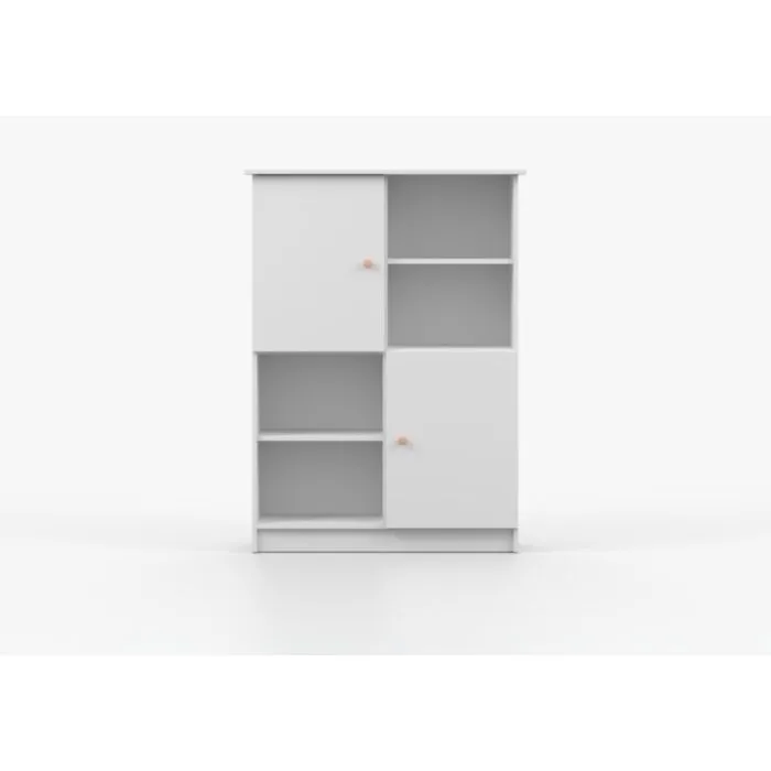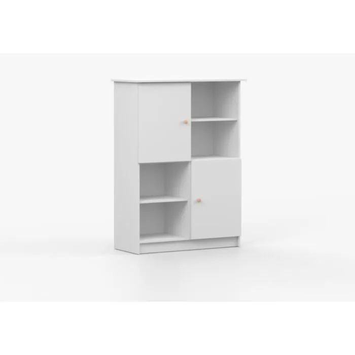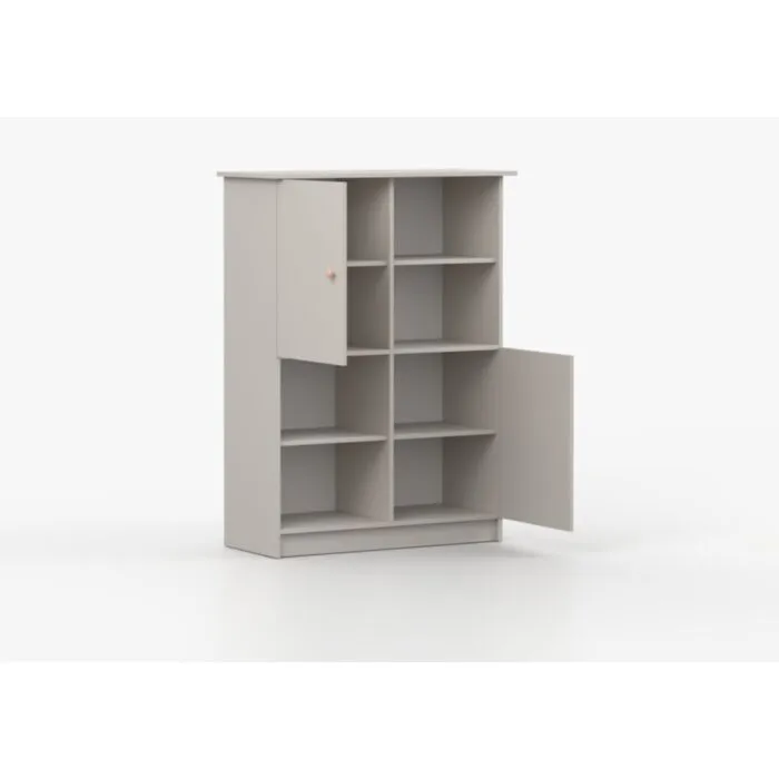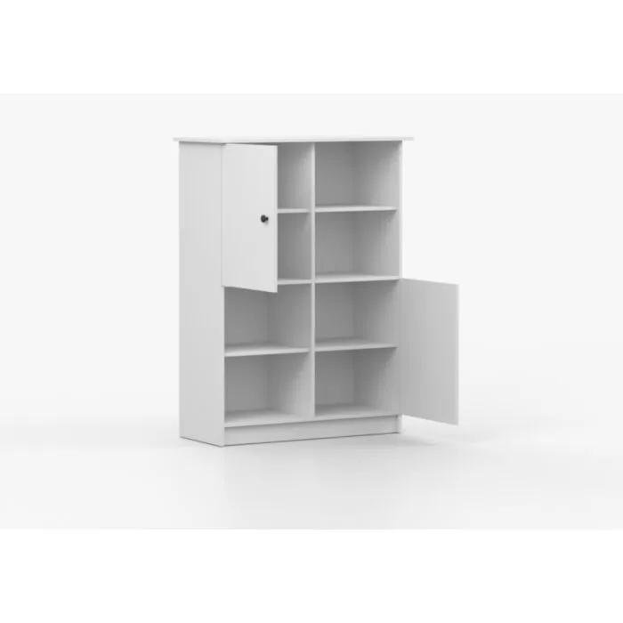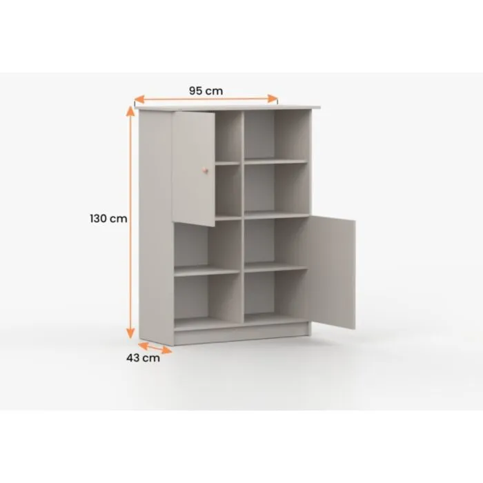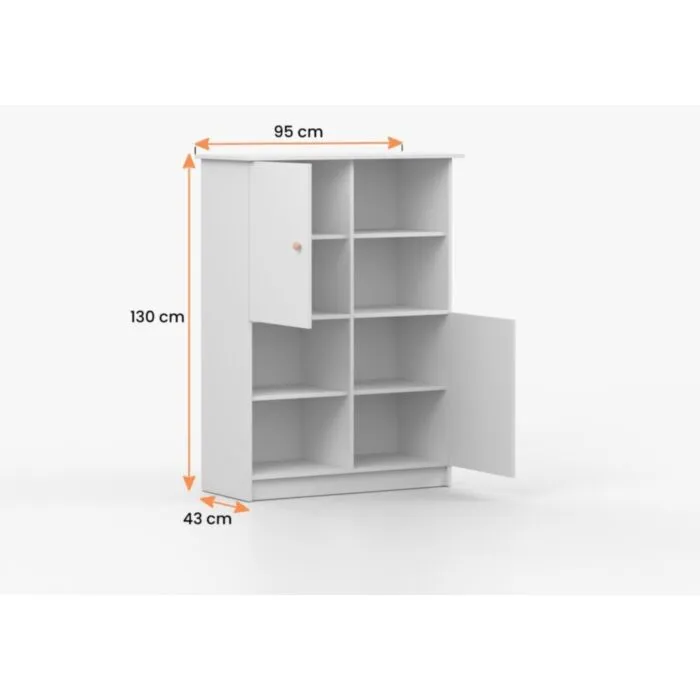 Regal SNEŽINKA z kar osmimi predali je praktičen in univerzalen. Združuje sodoben slog s funkcionalnostjo. Svetla barva z ročaji doda čar in daje ceolotni notranjosti edinstven videz. Na voljo je v dveh barvah: bela in kašmir. Za ročaje ima kakovostne gumbe, katerim lahko določate barvo antracit ali bež. Narejena je iz visokokakovostne laminirane plošče debeline 16 mm.