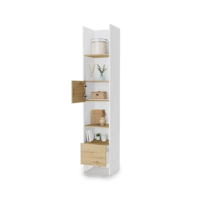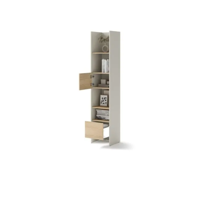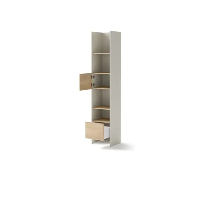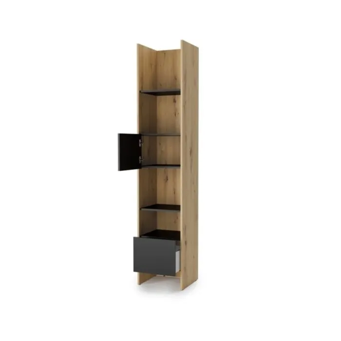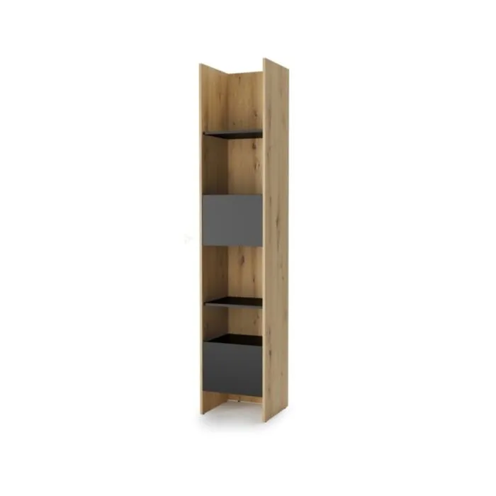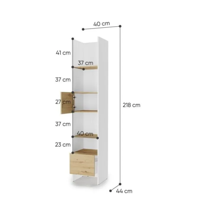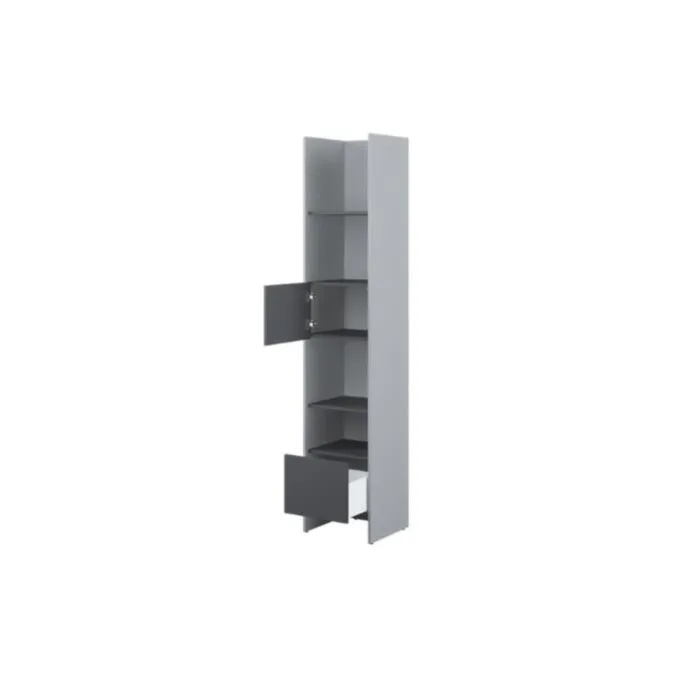 Regal za posteljo v omari METULJ 2 je elegantna in prostorna. Regal ima sistem za odpiranje na dotik “PUSH TO OPEN”. Mehanizem odpiranja na dotik odpravlja potrebo po ročajih, kar daje pohištvu minimalističen in eleganten videz. Prostorna notranjost ponuja veliko prostora za oblačila, dodatke in druge potrebščine.
