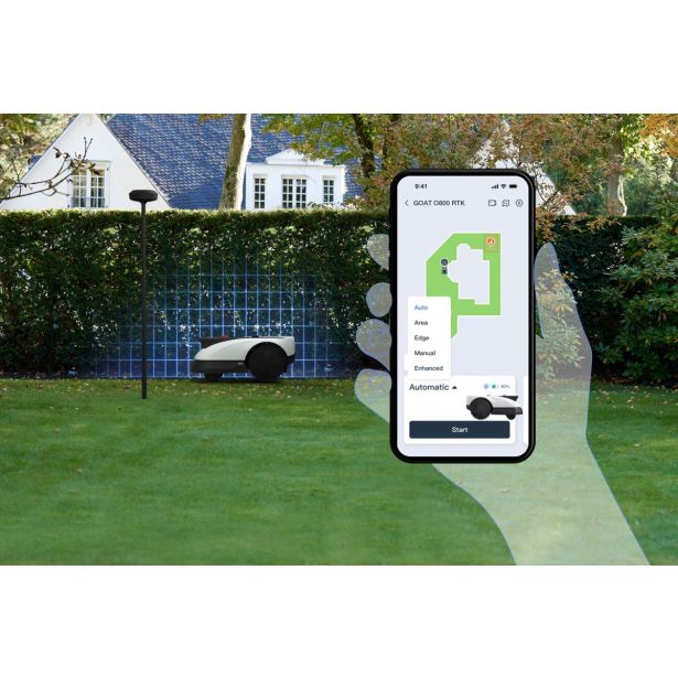Inovativna vrtna kosilnica GOAT O800 RTK samodejno zazna in nastavi vse vrste meja, kartira vaše dvorišče brez potrebe po fizičnih ovirah ali kablih, in to v le 15ih minutah. Uporabniki lahko preprosto prilagodijo preslikano območje prek aplikacije, kar jim omogoča popoln nadzor nad območjem košnje. Ta brezhibna integracija omogoča hitro in enostavno nastavitev ter zagotavlja natančen in prilagojen zemljevid dvorišča za optimalne rezultate košnje. Upravljanje z aplikacijo omogoča različne nastavitve: hitrost, višina košnje, višino izogibanja oviram, urnik košnje, urejanje zemljevida košnje itd.