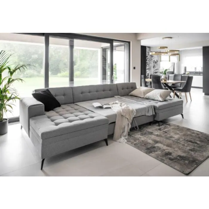 Sedežna garnitura AMIGO 2 je obogatena s spalno funkcijo z veliko površino, kar 295 x 110 cm. Zanesljiv sistem razpiranja delfin. Vzmetena je z valovitimi vzmetmi v kombinaciji s peno. Sedežna je udobna ter prijetna na otip, saj je izdelana iz mehke velvet tkanine. Sedežna je univerzalna zato ji ni potrebno določiti kota. Lahko jo postavite levo ali desno.