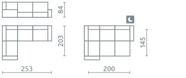je izjemno prijetnega izgleda, za udoben počitek v dnevnem prostoru. Garnitura ima raztegljivo ležišče, katero se raztegne na dimenzije 200x145cm. Pod krajšim krakom garniture se nahaja prostoren predal, kateri omogoča spravilo različnih blazin in odej. Sedežna garnitura je na voljo v levi in desni postavitvi. Izbirate lahko med večimi različnimi tkaninami in barvami za svojo sanjsko sedežno garnituro.