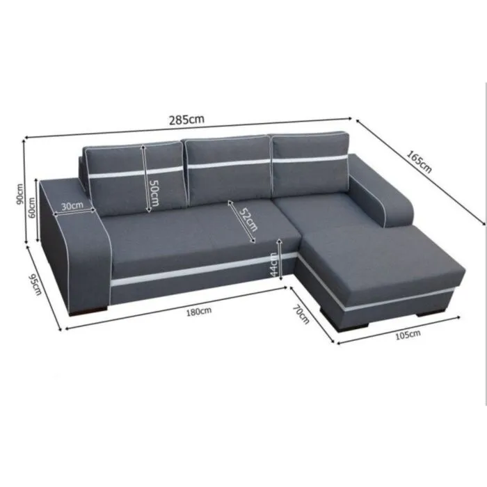 – D: 285 cm x G: 165 cm x V: 90 cm