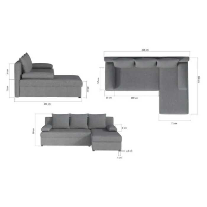 D: 206 cm x G: 146 cm x V: 73 cm