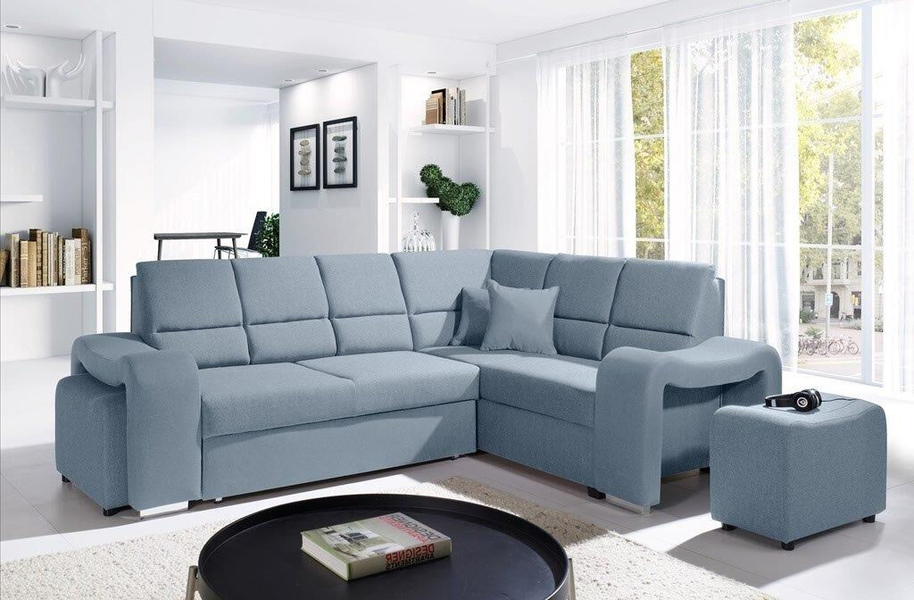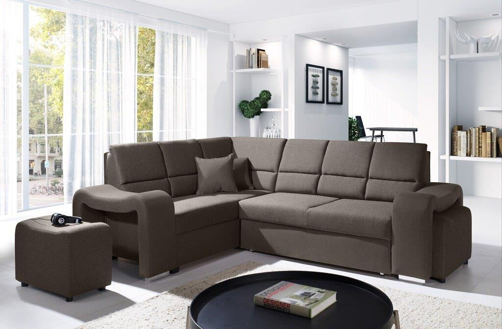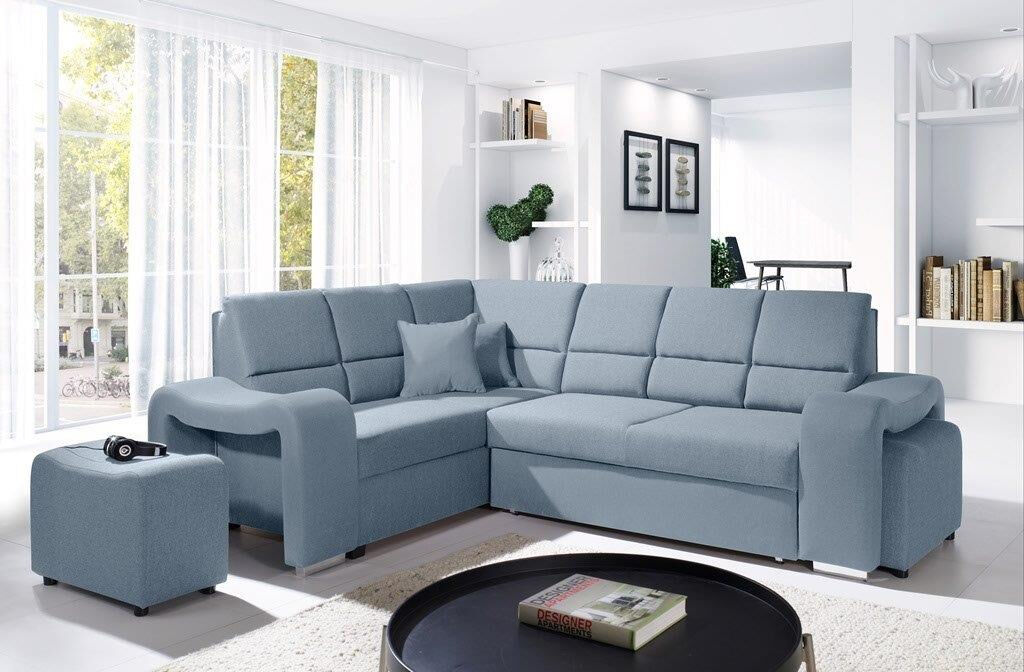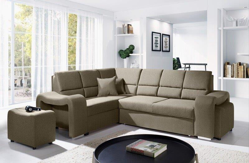 Kotna sedežna garnitura KIKI je zelo praktična in funkcionalna. Narejena iz kakovostnega blaga. Garnitura ima levi ali desni kot, katerega morate izbrati. Garnitura je vzmetena z valovitimi vzmetmi in vsebuje tudi pomožno ležišče. Garnitura vsebuje dva tabureja katera se spravita pri rokonaslonih. Prav tako vsebuje zaboj zaboj za shranjevanje.