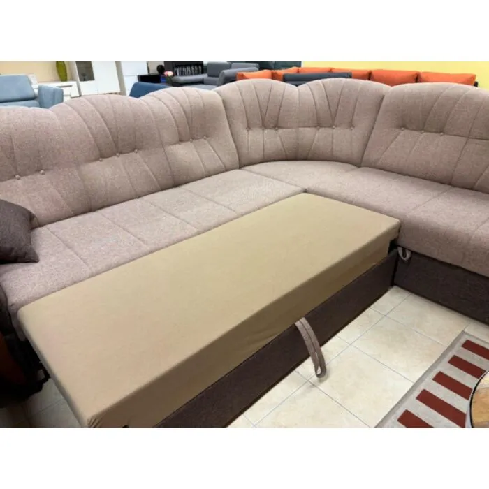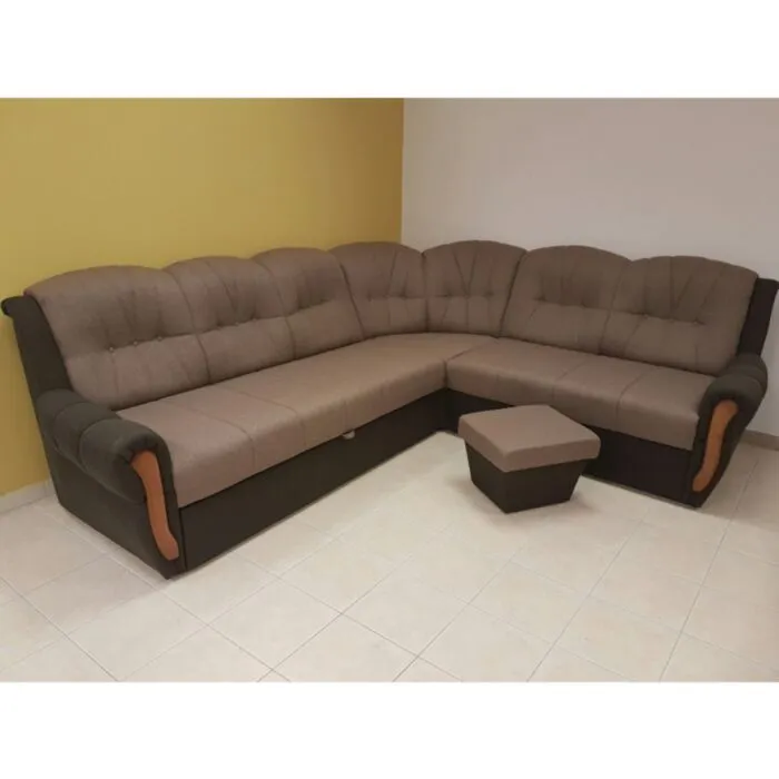 Sedežna garnitura NINA rjava je klasičnega dizajna, z lesenim dodatkom. Sedežna se raztegne v ležišče, pod dvosedom ima zaboj za shranjevanje stvari. Je zelo praktična in ekonomična.