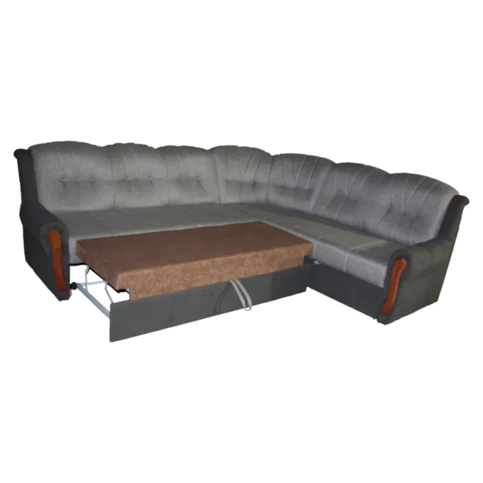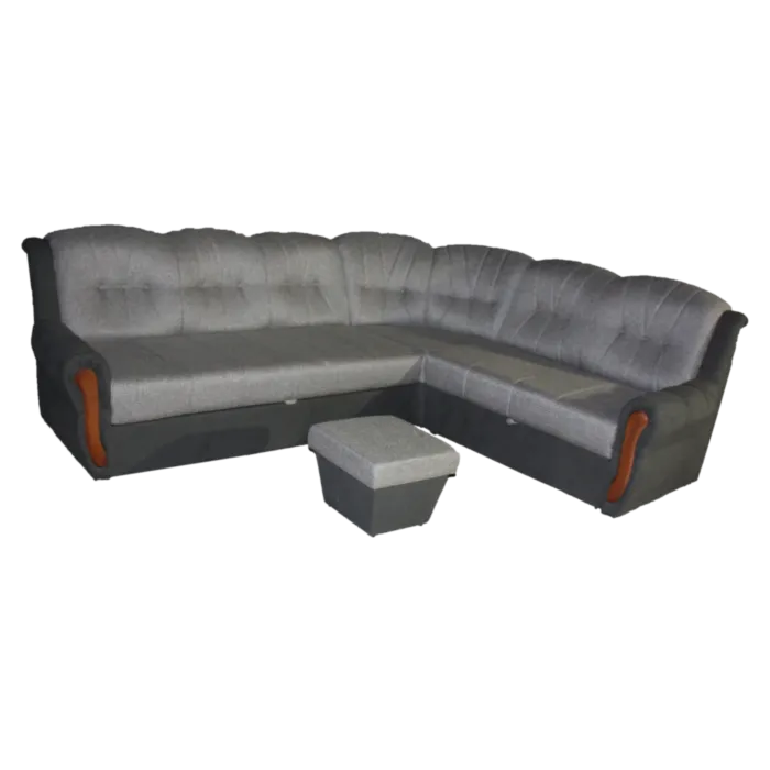 Klasična sedežna garnitura z lesenim dodatkom. Sedežna se raztegne v ležišče, pod dvosedom ima zaboj za shranjevanje stvari. Je zelo praktična in ekonomična.