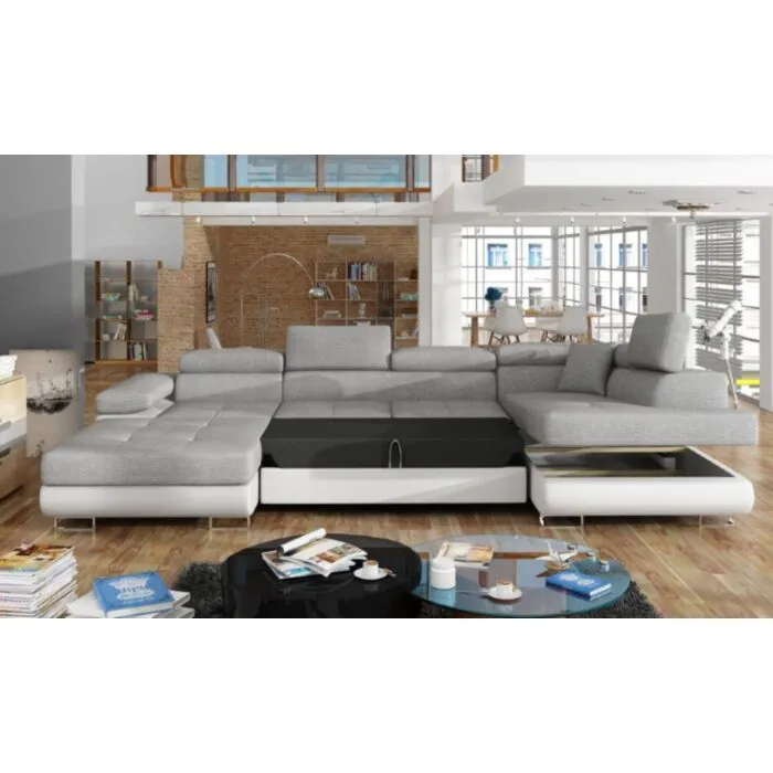 Sedežna garnitura RODRIGO- Z je moderna in kvalitetna. Ima nastavljive vzglavnike ter vsebuje zaboj za shranjevanje. Sedežna se raztegne v ležišče z dolphine raztegljivim mehanizmom. Sedežna garnitura je vzmetena z valovitimi vzmetmi.