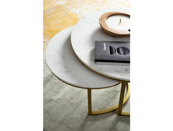Set 2 klubskih mizic PHOENIX bela vključuje dve klubski mizici narejeni iz jeklenega okvirja, ki imajo belo marmorno ploščo.
