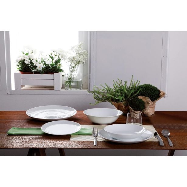 18-dela garnitura krožnikov Tognana Mwtropol Bianco je izdelana iz kakovostnega porcelana in sesatavljea iz 6 jušnih krožnikov, 6 jedilnih krožnikov ter 6 desertnih krožnikov.