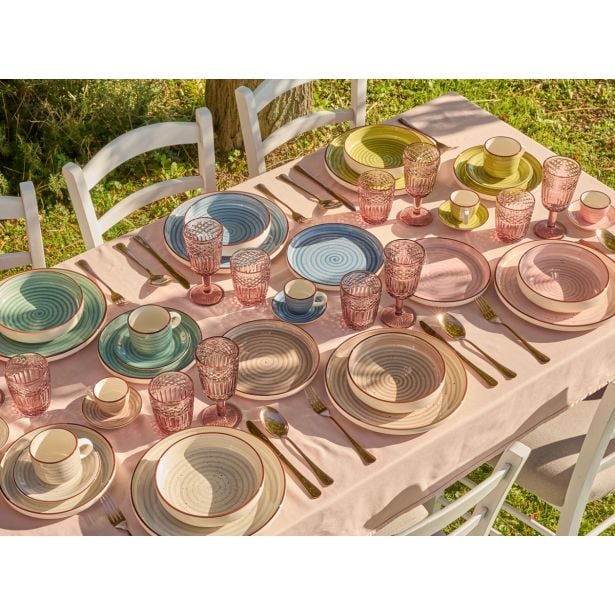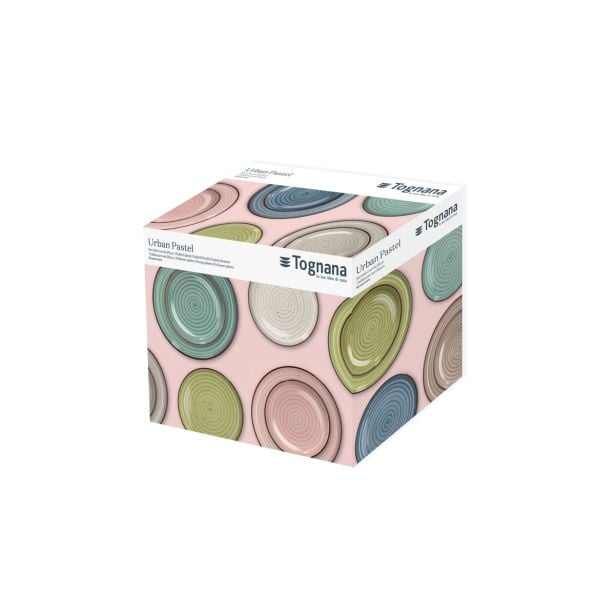 18 delna garnitura Urban pastel, sestavljena iz 6 x plitvi krožnik 27 cm, 6 x globoki krožnik 18.5 cm, 6 x desertni krožnik 20.5 cm.