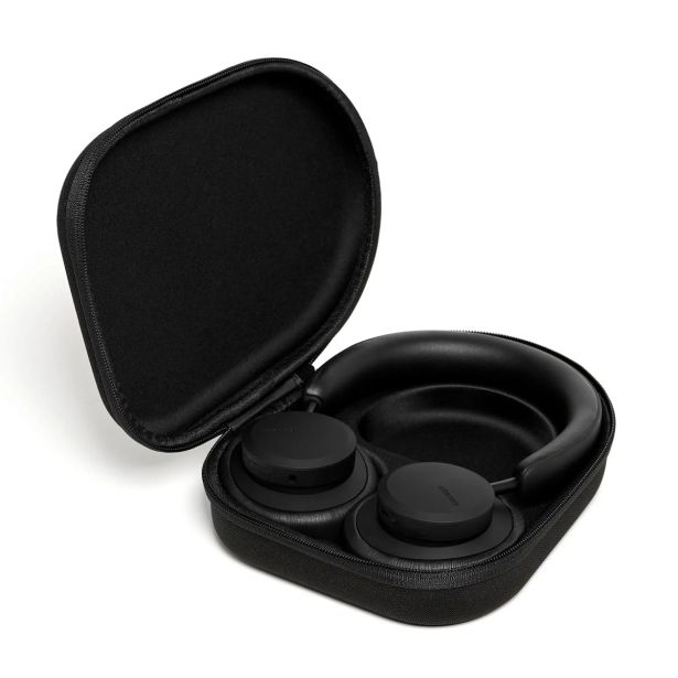Elegantne slušalke so prilagodljive po meri, imajo vgrajen mikrofon, gladke oblazinjene ušesne blazinice pa skrbijo za udobno celodnevno nošenje in poslušanje. Za dodatno udobje in praktičnost paket vključuje trpežno potovalno torbico, AUX kabel, letalski adapter in USB Type-C polnilni kabel.