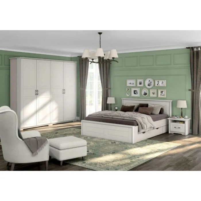 Kompletna spalnica ALOJA bo poskrbela za vaš počitek in mir, obenem pa ima veliko prostora za shranjevanje oblačil v garderobni omari za dve osebi. V kompletu dobite