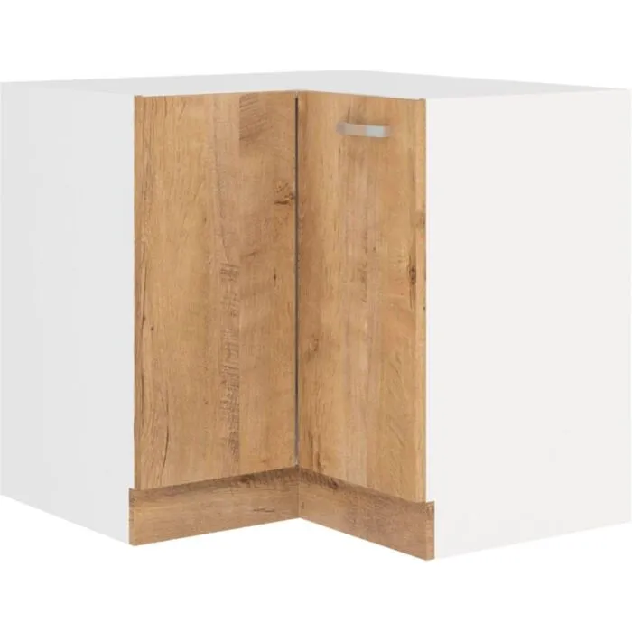 Spodnja kotna omara ARA 90/90D je sestavljena iz fronte in korpusa iz MDF plošče, debeline 16 mm. Robovi so iz melamina. Ročaji so sivi. Na voljo je v barvi sonome in hrasta. V komentarju dopišete, katero barvno kombinacijo želite.