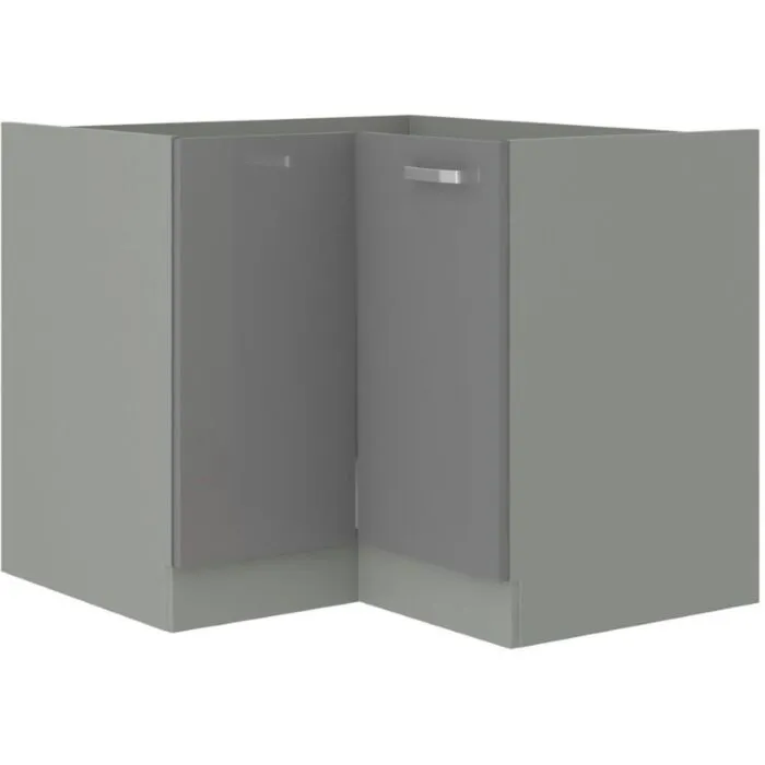 Spodnja kotna omara ELITE 90 x 90D je sestavljena iz fronte iz MDF plošče, debeline 16 mm, robovi so iz ABS 1 mm. Korpus je narejen iz laminirane plošče, debeline 16 mm, robovi so iz melamina. Kuhinjski element je na voljo v treh barvah visokega sijaja. V komentarju dopišete, katero barvno kombinacijo želite. Kuhinjski elementi imajo sistem mehkega zapiranja.