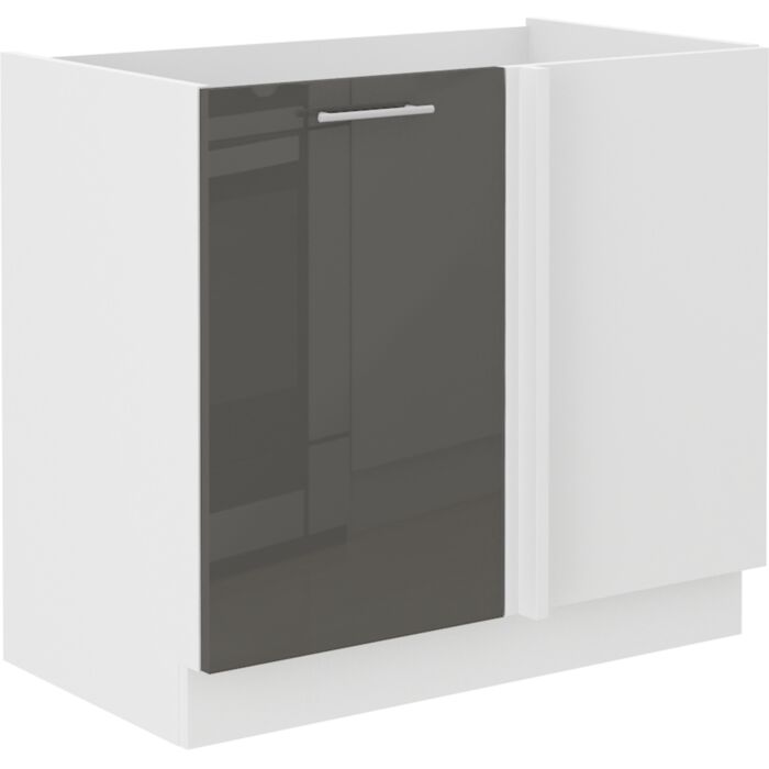 Spodnja kotna omara ELZA 105D je sestavljena iz fronte iz MDF plošče, debeline 16 mm, robovi so iz ABS 1 mm. Korpus je narejen iz laminirane plošče, debeline 16 mm, robovi so iz melamina. Kuhinjski element je na voljo v capuccino barvi visoki sijaj, beli barvi visoki sijaj in sivi barvi visoki sijaj. V komentarju dopišete, katero barvno kombinacijo želite. Kuhinjski element ima sistem mehkega zapiranja.