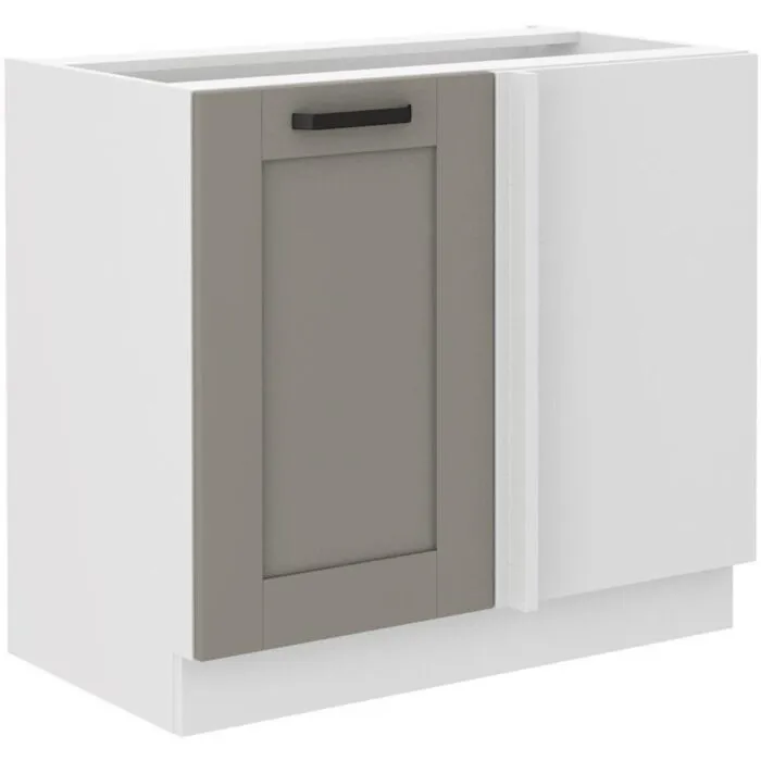 Spodnja kotna omara TAJA 105D je sestavljena iz MDF plošče, debeline 16 mm, robovi so iz ABS 1 mm, ročaji pa so iz kovine v črni barvi. Korpus je narejen iz laminirane plošče, debeline 16 mm, robovi so iz melamina. Kuhinjski element je na voljo v barvi bela/taupe in ima mehko zapiranje.