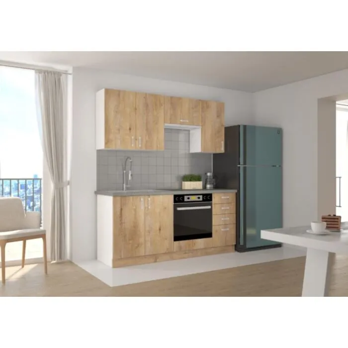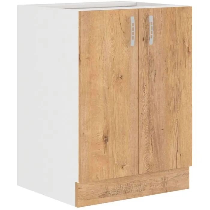 Spodnja omara ARA 60D je sestavljena iz fronte in korpusa iz MDF plošče, debeline 16 mm. Robovi so iz melamina. Na voljo je v barvi sonome in hrasta. Ročaji so sivi.