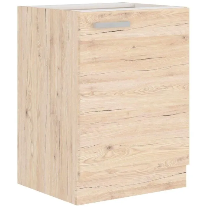 Spodnja omara SANREMO 60D je narejena iz laminirane plošče, debeline 16 mm, robovi so iz melamina. Na voljo je v barvi hrasta.