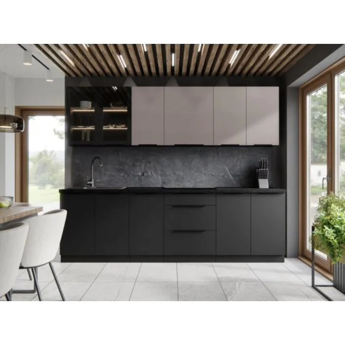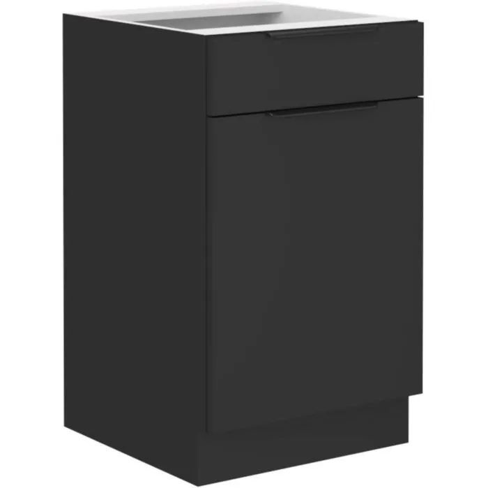Spodnja omara SAŠA 50D 1P je sestavljena iz vrat in predalnika, izdelana iz laminirane plošče, debeline 16 mm, robovi so iz ABS 1 mm, ročaji so iz aluminija v črni barvi. Korpus je narejen iz laminirane plošče, debeline 16 mm, robovi so iz melamina. Kuhinjski element je na voljo v črni barvi in ima mehko zapiranje.