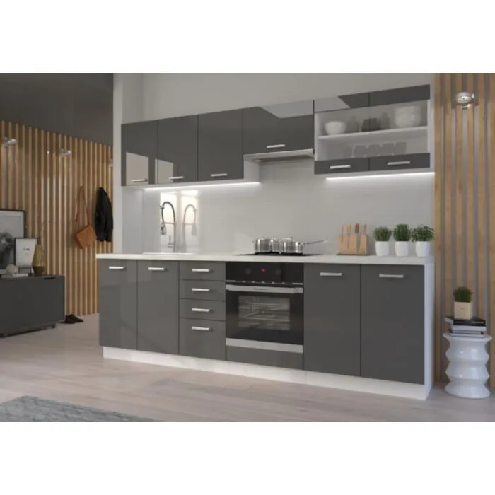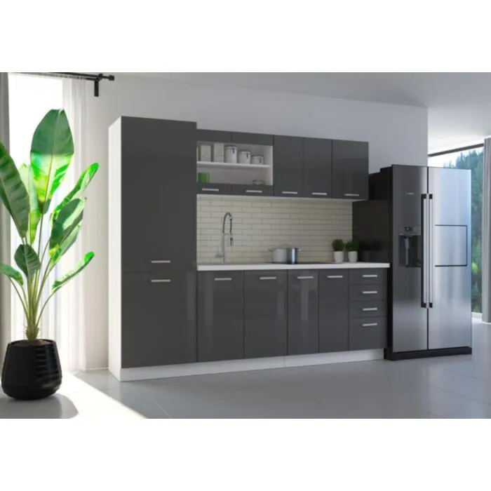 Spodnji kotni element SONJA 89 x 89 D je dobavljiv v belo sivi kombinaciji. Korpusi so iz laminirane plošče debeline 18 mm.Ročaji so iz pvc-ja.