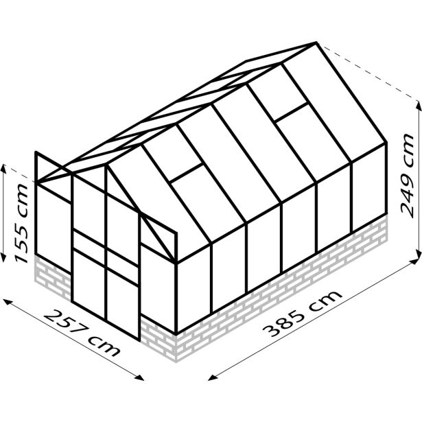 Rastlinjak Cassandra z elegantnim opečnim podnožjem (ni priloženo) združuje udobje, zasebnost in optimalne pogoje za rast rastlin. Kaljeno varnostno steklo, prostorna notranjost, odlično prezračevanje ter drsna vrata za udoben dostop. Slike so simbolične.