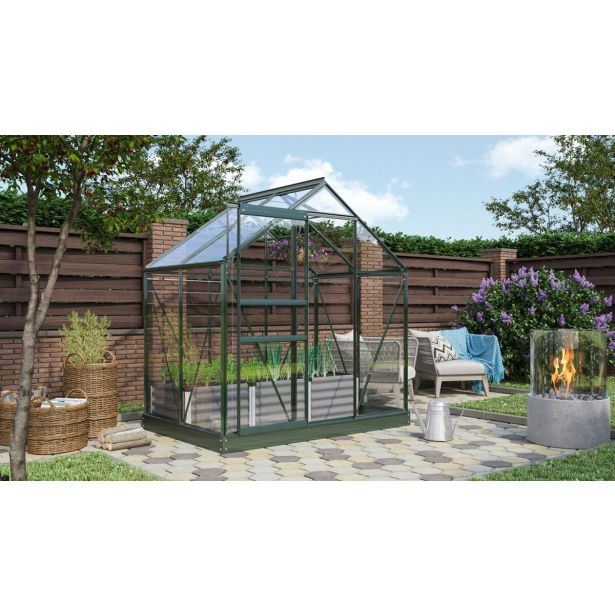 Komplet rastlinjaka iz prašno lakiranih aluminijastih profilov in zasteklitve iz približno 3 mm debelega kaljenega varnostnega stekla (ESG), ki je kristalno prozorno.
