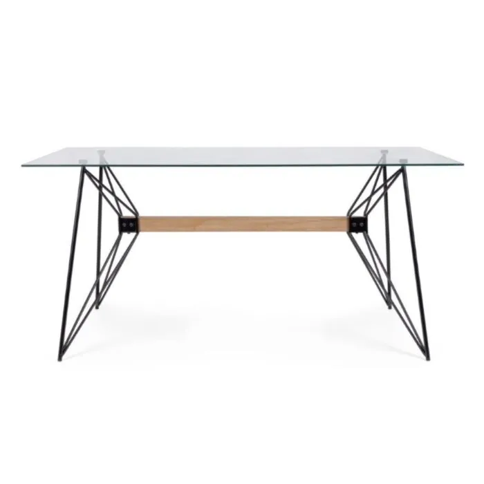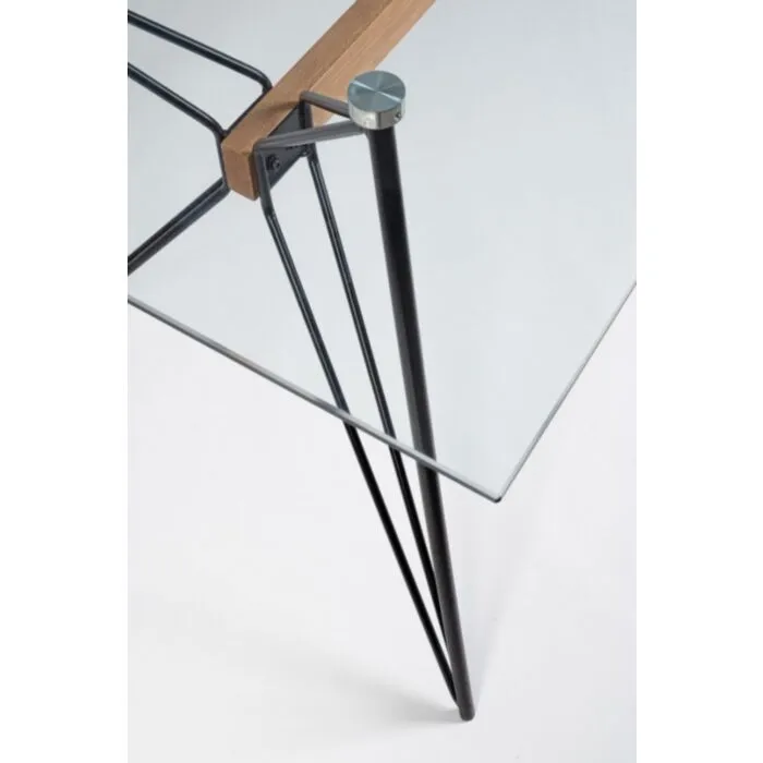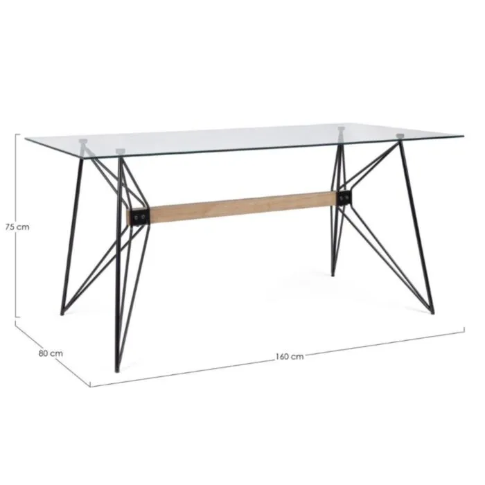 Steklena miza PRIMARY 160X80 ima kovinsko konstrukcijo, sredinski del je iz brezovega lesa. Mizna plošča je iz kaljenega stekla.
