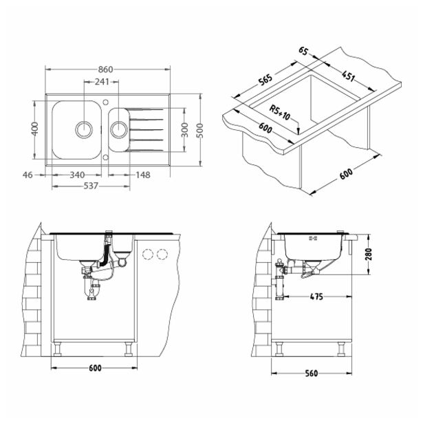 – predhodno izdelane odprtine fi 35 za montažo armature, Pop-up sifona