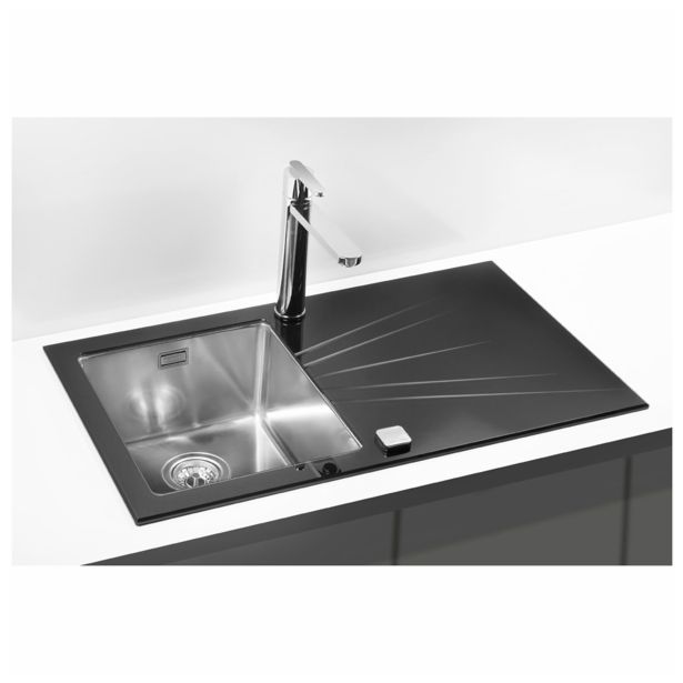 Pomivalno korito je izdelano iz visokokakovostnega plemenitega nerjavnega jekla v kombinaciji s stekleno delovno površino iz kaljenega varnostnega stekla. Pomivalniki so izdelani za zelo zahtevne uporabnike, ki poleg brezkompromisne kakovosti zahtevajo tudi najsodobnejši dizajn ter si drznejo poseči po čem drugačnem.LEVO – veliko korito kuhinjskega pomivalnika je na levi strani, odcejalni del je na desni