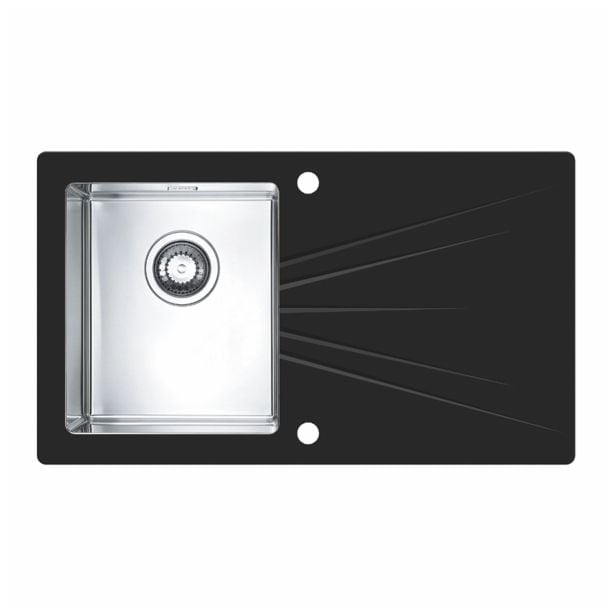 STEKLENO POMIVALNO KORITO ALVEUS KARAT 10, LEVO, ČRNA 860X500 MM