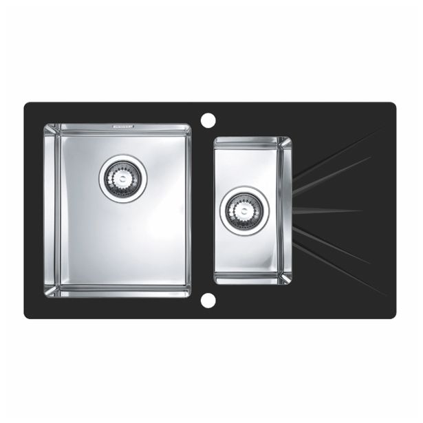 Pomivalno korito je izdelano iz visokokakovostnega plemenitega nerjavnega jekla v kombinaciji s stekleno delovno površino iz kaljenega varnostnega stekla. Pomivalniki so izdelani za zelo zahtevne uporabnike, ki poleg brezkompromisne kakovosti zahtevajo tudi najsodobnejši dizajn ter si drznejo poseči po čem drugačnem.LEVO – veliko korito kuhinjskega pomivalnika je na levi strani, odcejalni del je na desni
