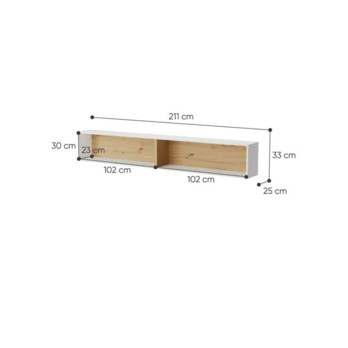 Stenska polica za posteljo v omari ZVONČEK je funkcionalen in odličen za vse tiste, ki potrebujeste dodaten prostor za shranjevanje. Na polici boste lahko shranili veliko stvari in pri tem bo soba ostala modernega izgleda. Funkcionalna polica se ujema z vsemi posteljami ZVONČEK. Prostorna omarica je na voljo v več barvnih kombinacijah.  Lahko jo postavite kamorkoli želite, saj je prilagojena vašim željam in okusu.
